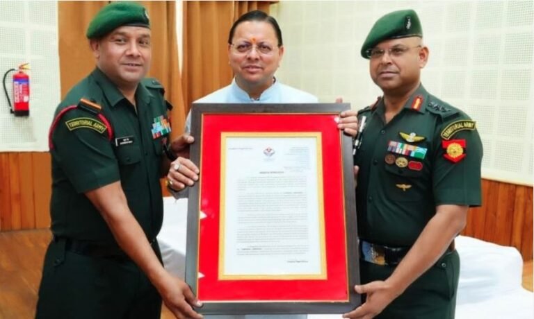 देहरादून| 127 इन्फैंट्री बटालियन टेरिटोरियल आर्मी (इकोलॉजिकल), गढ़वाल राइफल्स को वर्ष 2025–26 हेतु उत्तराखंड सरकार द्वारा मुख्यमंत्री प्रशंसा पुरस्कार से सम्मानित किया गया है।