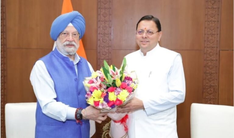 मुख्यमंत्री धामी ने केंद्रीय पेट्रोलियम एवं प्राकृतिक गैस मंत्री हरदीप सिंह पुरी से की मुलाकात