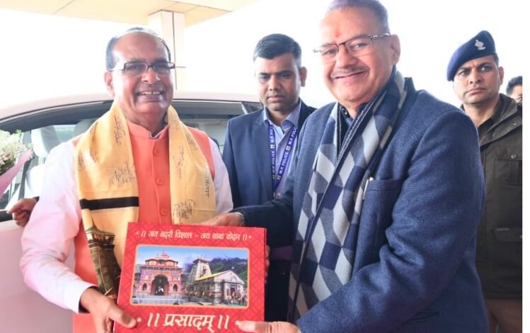 गणेश जोशी ने शिवराज सिंह चौहान को भगवान बदरीनाथ धाम का पटका एवं प्रसाद भेंट किया