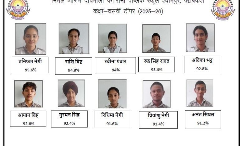 ऋषिकेश – निर्मल आश्रम ज्ञान दान अकादमी (निःशुल्क विद्यालय) के छात्रों ने केंद्रीय माध्यमिक शिक्षा बोर्ड (सीबीएसई) द्वारा घोषित कक्षा 10वीं के परीक्षा परिणामों में उत्कृष्ट प्रदर्शन करते हुए शत-प्रतिशत सफलता अर्जित कर विद्यालय का नाम गौरवान्वित किया है। इस उल्लेखनीय उपलब्धि से विद्यालय परिवार में अत्यंत हर्ष एवं उत्साह का वातावरण व्याप्त है।
